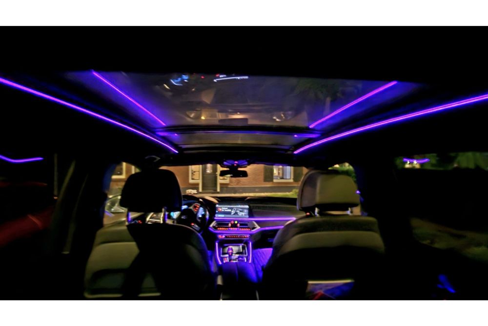Daarnaast kunnen we voor €799 "sky lounge" inbouwen voor u. Zie de laatste foto. LED bij het panoramadak wat gewoon met het BMW Ambiente verlichting (4UR) bediend kan worden en van kleur mee veranderd.